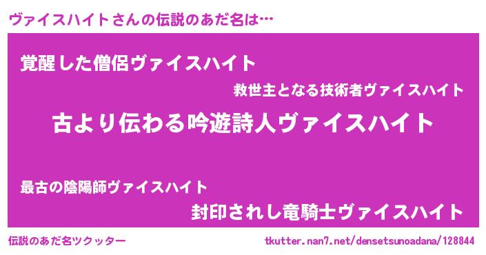 | 意味不明あだ名 | 『自称ヴァイスハイト』 |