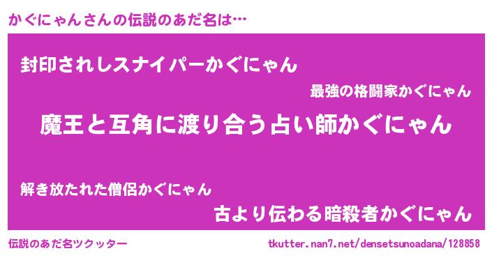 | ヘコむあだ名 | 『かぐにゅー』『かぐにゃん(遠い目)』 |