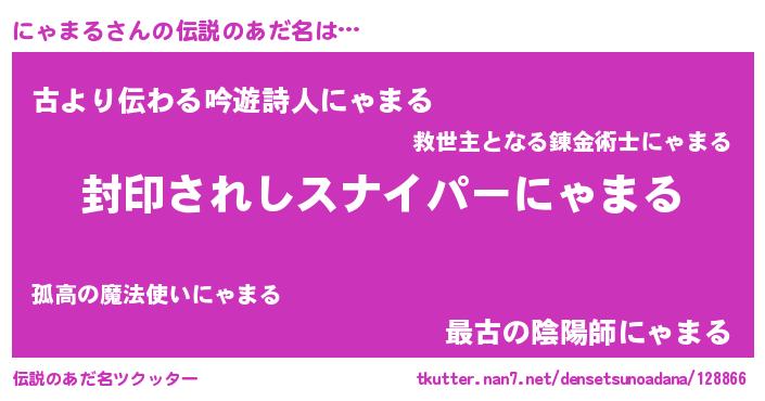 | ヘコむあだ名 | 『にゃっふぃ~』『にゃまる(小並感)』 |