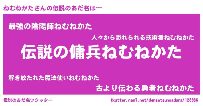 | ヒーロー風カッコイイあだ名 | 『仮面ネムダー』『スーパーネムネカタ』 |