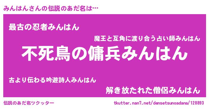 | ヒーロー風カッコイイあだ名 | 『スーパーミンハン』『仮面ミンダー』 |