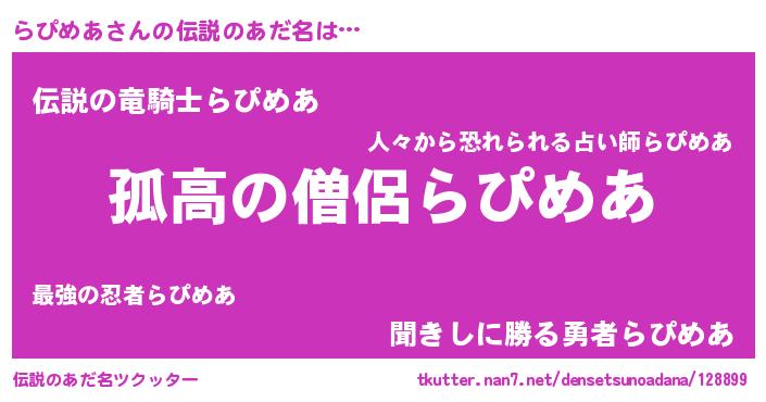 | ヒーロー風カッコイイあだ名 | 『仮面ラピダー』『暗黒騎士ラピ』 |
