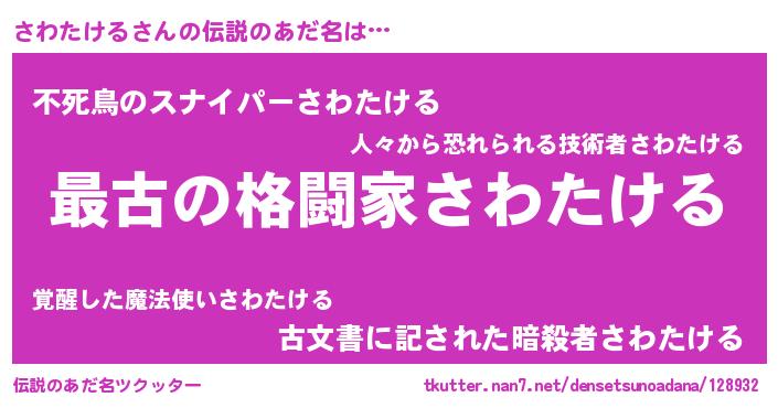 | 肩書あだ名 | 『さわたける閣下』『さわたける総理大臣』 |