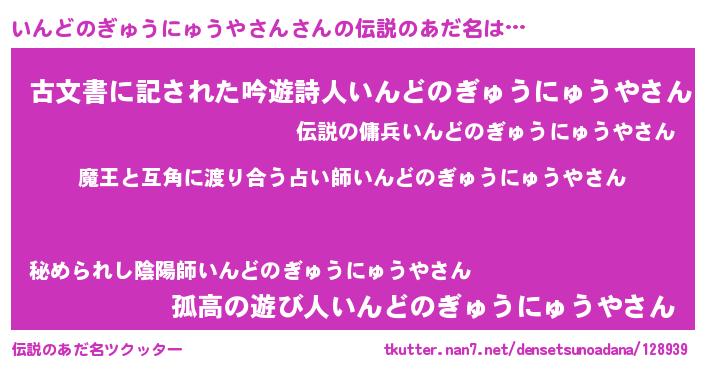 | ヒーロー風カッコイイあだ名 | 『慈愛の使者いんどのぎゅうにゅうやさん』 |