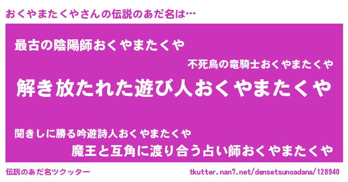| 男性向けラノベタイトル風あだ名 | 『ダンジョンにおくやまたくやを求めるのは間違っているだろうか』 |