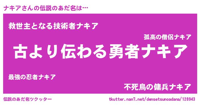 | ヒーロー風カッコイイあだ名 | 『ネオナキア』『愛の使者ナキア』 |