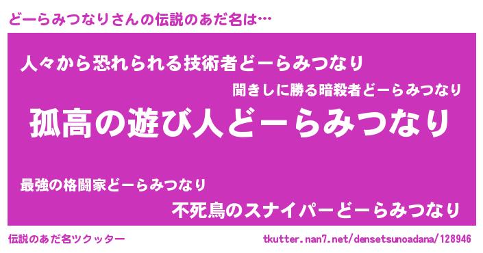| 意味不明あだ名 | 『とにかく怪しいどーらみつなり』 |
