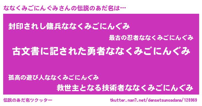 | ヒーロー風カッコイイあだ名 | 『ネオナナクミゴニングミ』 |