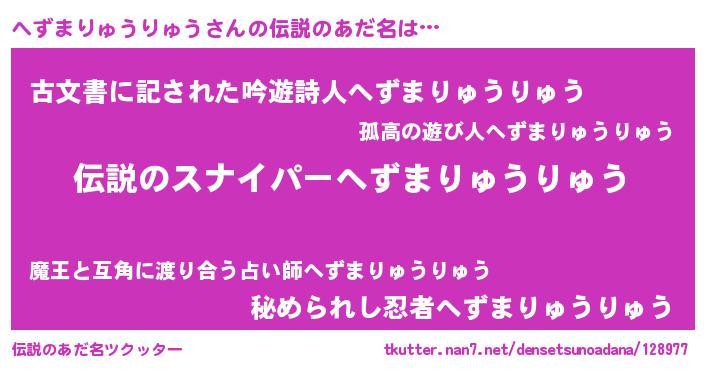 | ヒーロー風カッコイイあだ名 | 『スーパーヘズマリュウリュウ』 |