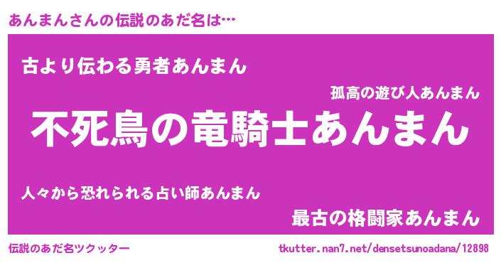 | ヘコむあだ名 | 『あんふぇ~』『あんまん(小並感)』 |