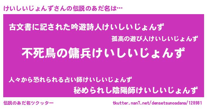 | 胡散臭い通販商品みたいなあだ名 | 『モテモテ間違いなし水晶球…その名も「けいしいじょんず」』 |