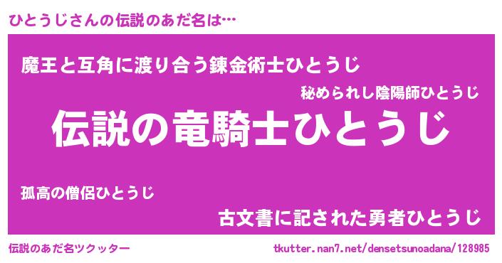 | ヒーロー風カッコイイあだ名 | 『スーパーヒトウジ』『愛の使者ひとうじ』 |