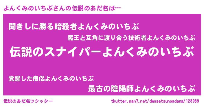 | 胡散臭い通販商品みたいなあだ名 | 『必ず成功する霊験あらたかなお札…その名も「よんくみのいちぶ」』 |
