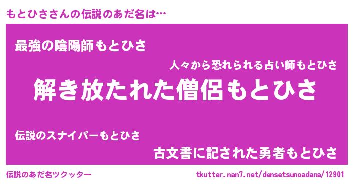 | 意味不明あだ名 | 『自称もとひさ』『もとひさフォーエバー』 |