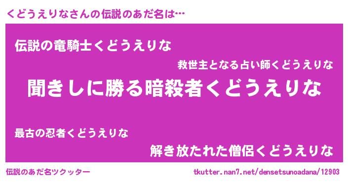 | ヒーロー風カッコイイあだ名 | 『ネオクドウエリナ』『仮面クドダー』 |