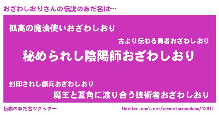 | 意味不明あだ名 | 『自称おざわしおり』 |