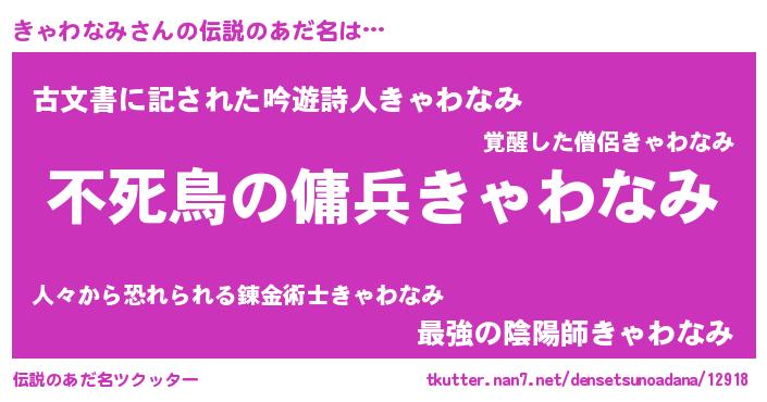 | 胡散臭い通販商品みたいなあだ名 | 『モテモテ間違いなし水晶球…その名も「きゃわなみ」』 |
