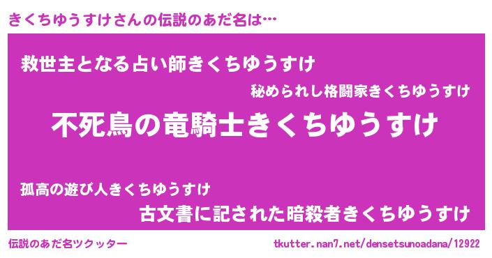 | 女子向けラノベタイトル風あだ名 | 『きくちゆうすけ姫と円卓の騎士』 |