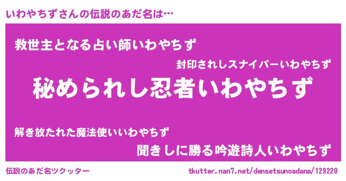 | 意味不明あだ名 | 『住所不定無職いわやちず(65歳)』 |