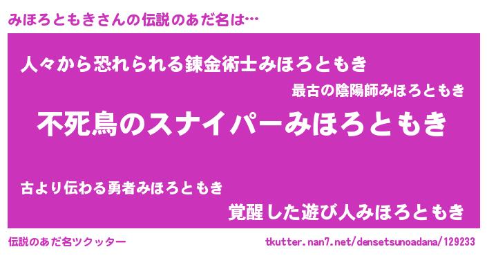 | 胡散臭い通販商品みたいなあだ名 | 『モテモテ間違いなし霊験あらたかなお札…その名も「みほろともき」』 |