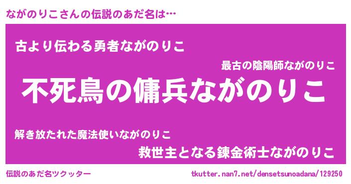 | ヒーロー風カッコイイあだ名 | 『スーパーナガノリコ』『仮面ナガダー』 |