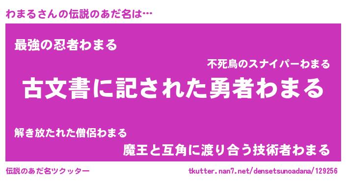 | ヒーロー風カッコイイあだ名 | 『ネオワマル』『ウルトラ戦士ワマル』 |