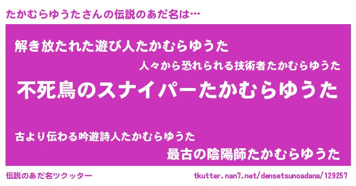 | ヒーロー風カッコイイあだ名 | 『スーパータカムラユウタ』 |
