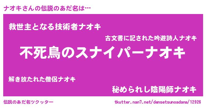 | 胡散臭い通販商品みたいなあだ名 | 『モテモテ間違いなし霊験あらたかなお札…その名も「ナオキ」』 |