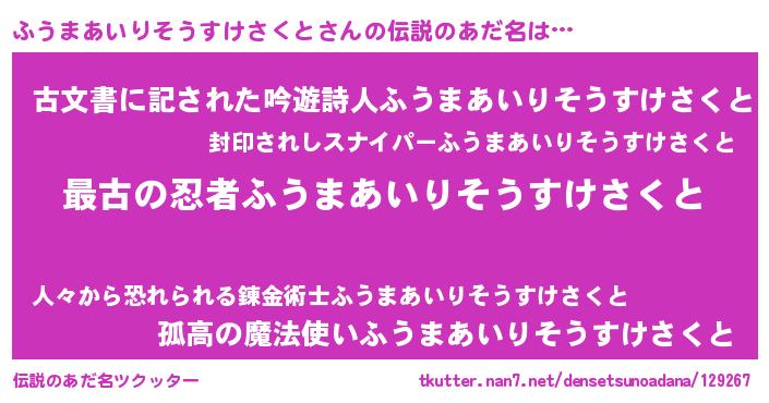 | 意味不明あだ名 | 『ふうまあいりそうすけさくとフォーエバー』 |