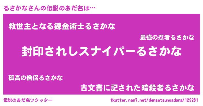 | ヘコむあだ名 | 『るさっふぃ~』『るさかな(苦笑)』 |