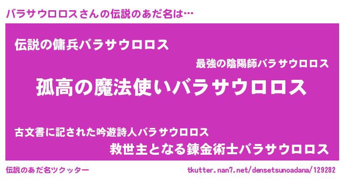 | 胡散臭い通販商品みたいなあだ名 | 『信頼と実績のサプリメント…その名も「バラサウロロス」』 |