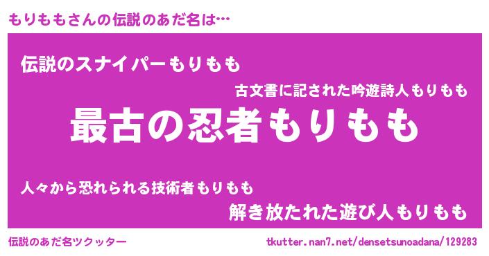 | ヒーロー風カッコイイあだ名 | 『ウルトラもりももマン』『銀牙騎士モリ』 |