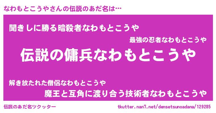 | ヘコむあだ名 | 『なわにゅー』『なわもとこうや(爆)』 |