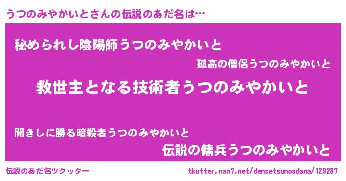 | 男性向けラノベタイトル風あだ名 | 『ノーゲーム・ノーウツノミヤカイト』 |