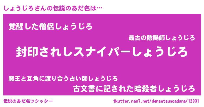 | 男性向けラノベタイトル風あだ名 | 『この素晴らしい世界にしょうじろを!』 |