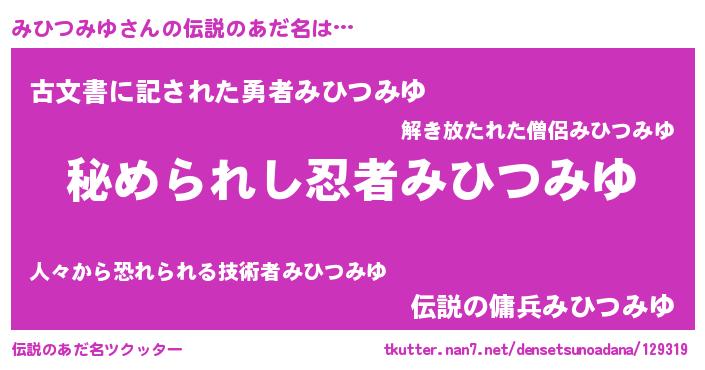 | ヒーロー風カッコイイあだ名 | 『ウルトラみひつみゆマン』 |