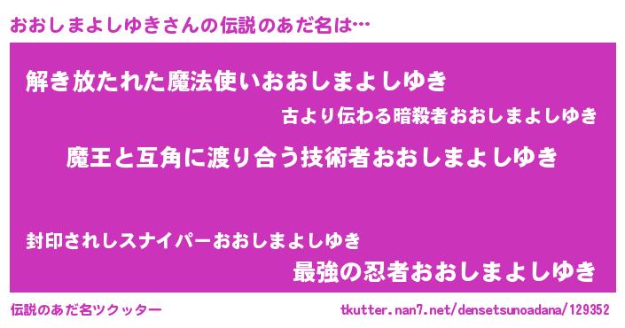 | 女子向けラノベタイトル風あだ名 | 『おおしまよしゆき恋絵巻』 |