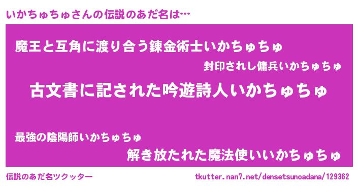 | ポケモン風あだ名 | 『ゼニイカ』『イックウザ』 |