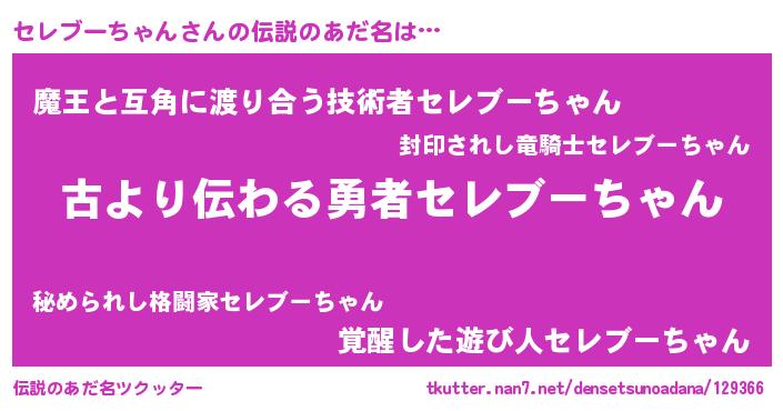 | ヒーロー風カッコイイあだ名 | 『ネオセレブーチャン』『炎刃騎士セレ』 |