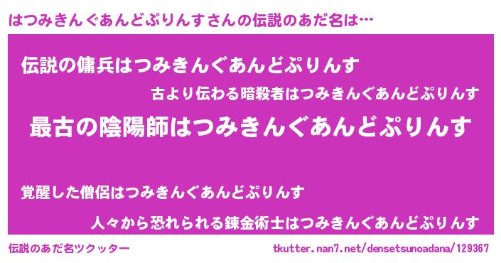 | ファンタジー風あだ名 | 『エターナルハツミキングアンドプリンスー』 |
