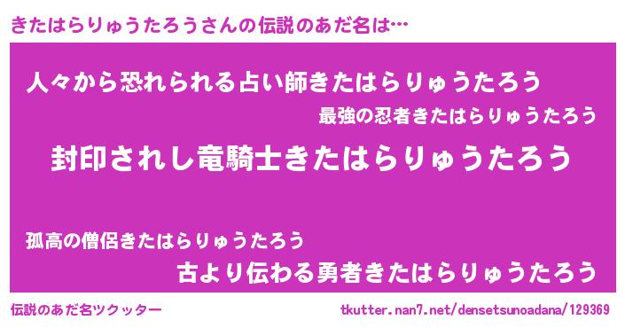 | ヒーロー風カッコイイあだ名 | 『スーパーキタハラリュウタロウ』 |