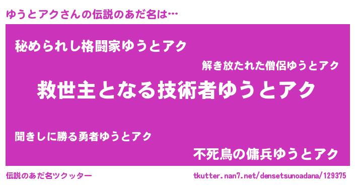 | ヒーロー風カッコイイあだ名 | 『天空の使者ゆうとアク』『仮面ユウダー』 |