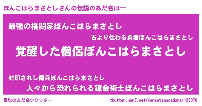 | 意味不明あだ名 | 『住所不定無職ぼんこはらまさとし(56歳)』 |