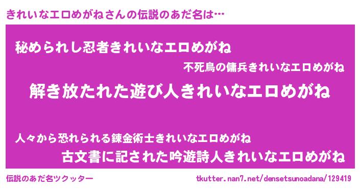 ポケモン風あだ名 | 『ヒキレイナエロメガネ』『キレイダネ』 |