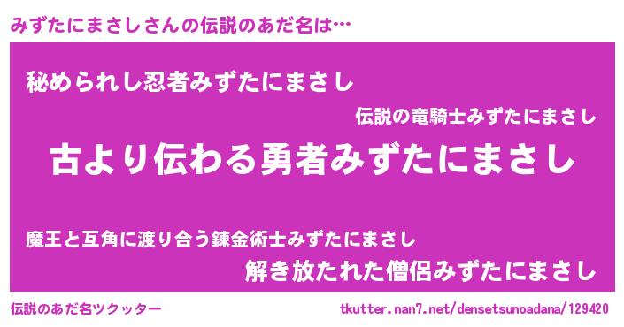 | 意味不明あだ名 | 『永久保存みずたにまさし』 |