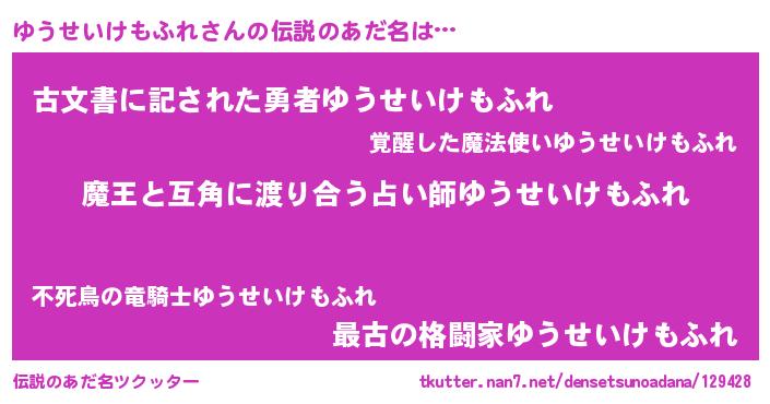 | 男性向けラノベタイトル風あだ名 | 『転生したらゆうせいけもふれだった件』 |