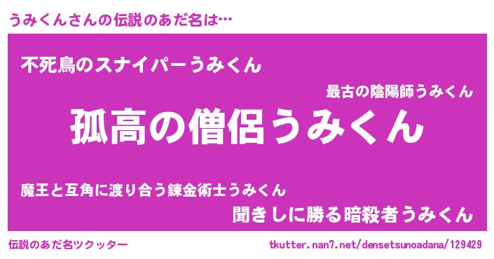 | ヒーロー風カッコイイあだ名 | 『暗黒騎士ウミ』『スーパーウミクン』 |