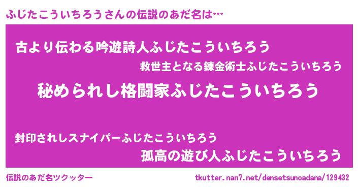 | 男性向けラノベタイトル風あだ名 | 『フジタコウイチロウスレイヤー』 |
