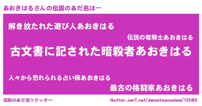 | ヒーロー風カッコイイあだ名 | 『ネオアオキハル』『炎刃騎士アオ』 |