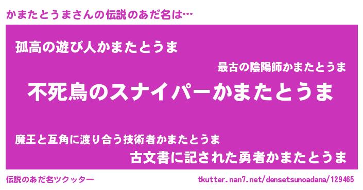 | 意味不明あだ名 | 『住所不定無職かまたとうま(85歳)』 |